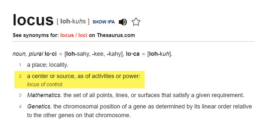 Have you ever noticed that some people have a “can do” attitude while others constantly make excuses and blame others for their circumstances? Well, that’s considered a locus of control. Some people have an internal locus of control – those are the “can do” people and others have an external locus of control – those are the people who blame others.